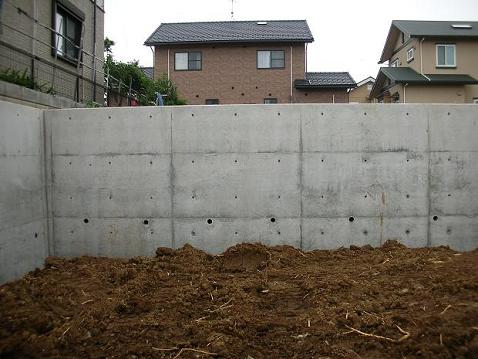 よう壁工事が終了し、そのよう壁の上に計画する建物本体の配置の確認です。