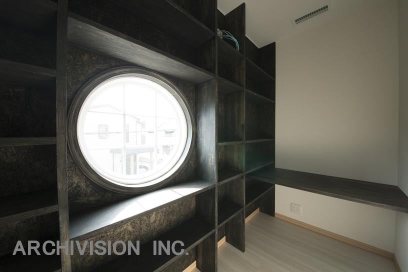 2階のコーナーに設けた、やや隠れ家的な書斎。