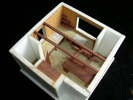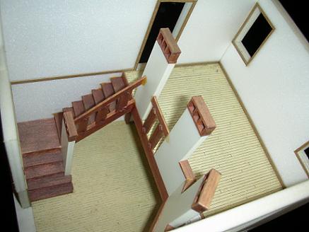 2003年竣工の「カントリーハウス」の外観、内観模型です。 ダイニングキッチンを上から眺める 階段と2階ホール カントリースタイルの外観 にほんブログ村