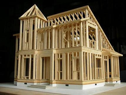 桜川市に建っている「ブルーマウンテン」の木組みの模型です。