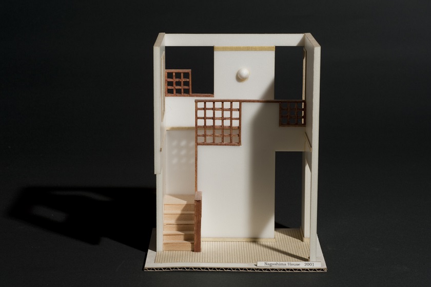こちらはスケール30 (1/30) で制作した室内模型です。格子はバルサを切って塗装しました。