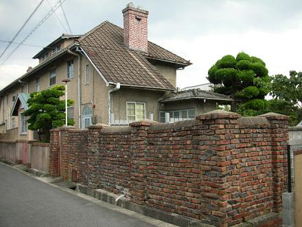 近江八幡に多く残されているヴォーリズの設計した建築のひとつ、旧近江ミッション・ダブルハウス。 大正10年建築です。ということは1921年ですから、もうすぐ築90年になります。 それにしてもこのレンガ積みは、長い年月を耐え忍んだ感があります。一個一個大きさが違うだけでなく、変形しているところも味わいのひとつです。