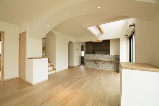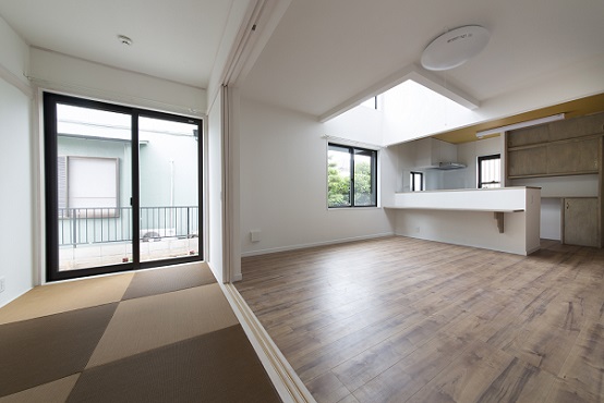 和室に接続するLDKの床は床暖房対応の国産フローリングです。