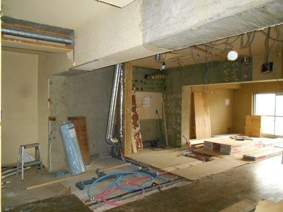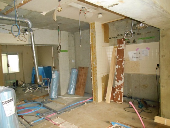 「築31年、リタイヤ後のマンションフルリノベ」 (取手市) の工事現場は、既存部分の解体工事が進み、ほぼスケルトン状態になりました。
