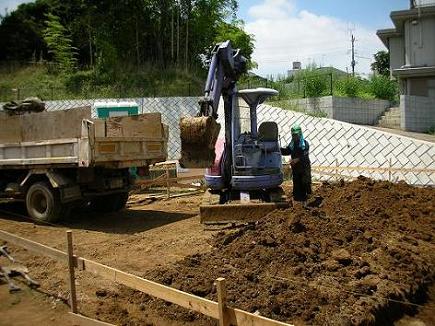 お盆前に根伐工事を終わらせ、盆明けから本格的に基礎工事が始まります。