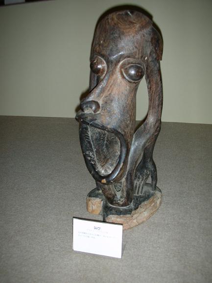 一方、タンザニアのマコンデ高原で暮す人々の彫刻作品の「叫び」は、張り裂けるくらい大きな口を開け、隣の部族が襲ってこないか、あるいは、獲物はまだ取れないのか、といった直接的ないし現実的な恐れに対する叫びのように思える。見る視点によっては笑ってしまう作品のように見えますが、まじめに笑える作品です。東アフリカに豊富な黒檀を彫って作品としていますが、この黒檀はかなり硬く技術も要するようです。