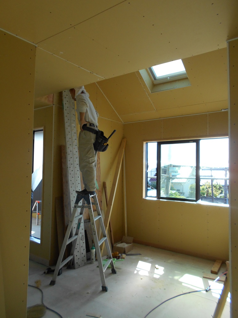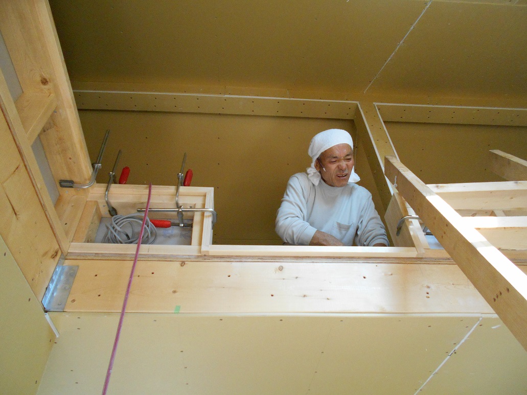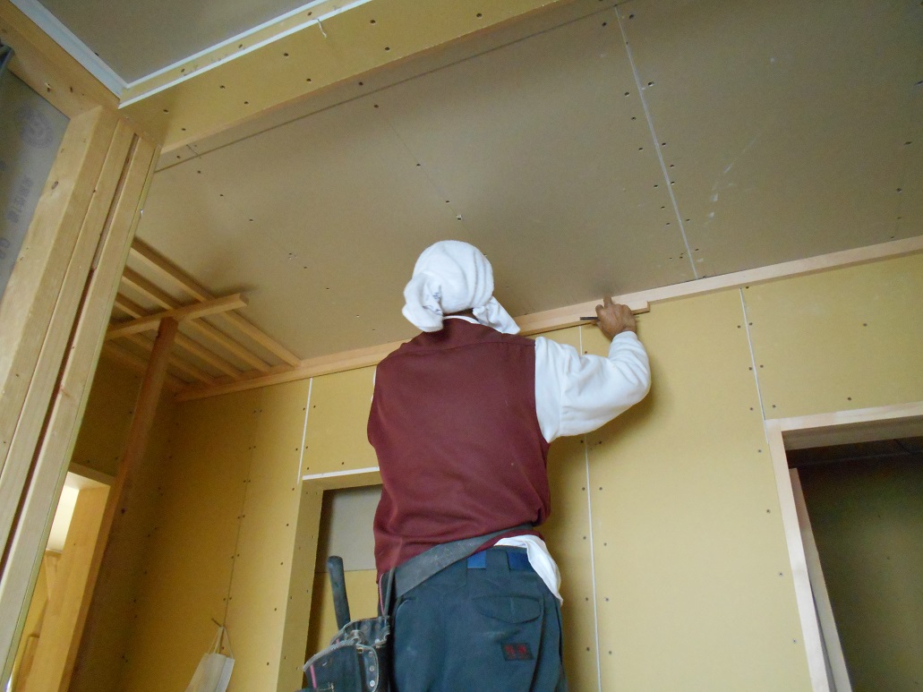造作家具で使う建材が現場に搬入されました。詳細図と照らし合わせ、寸法などの再確認を行いました。この住宅では使いやすさ第一で、造作家具が随所に計画されています。