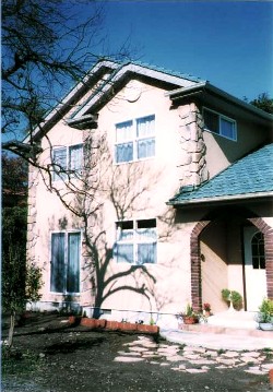端正な切妻屋根は、グリーンの三州陶器瓦で おおわれている。
